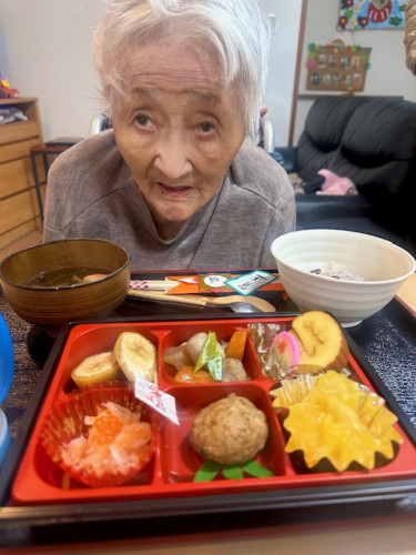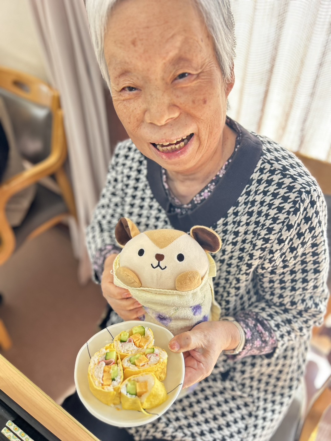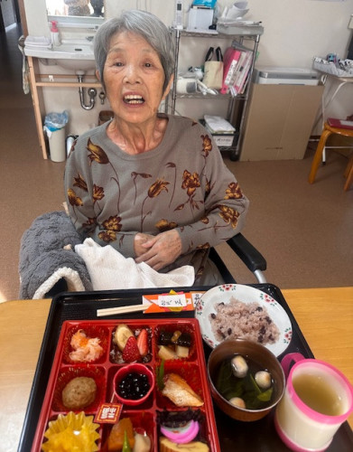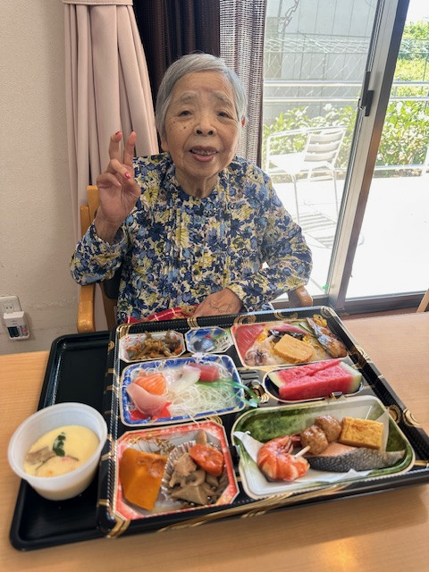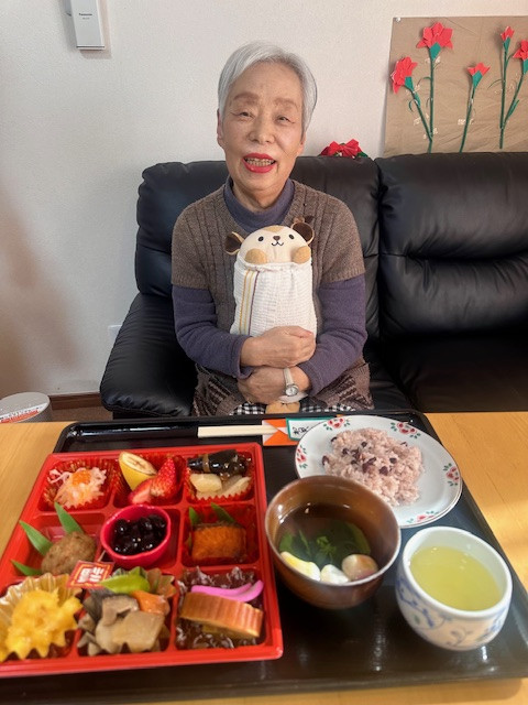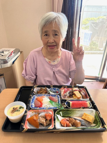 6月生まれのご利用者様、お誕生日のお祝いです。とても素敵な笑顔を見せてくださいました。